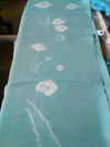 帯揚げです。 それぞれ一部分しか写真には撮れてないので・・・ でも不思議なことにその人らしく出来上がります。 ほとんど同じ下絵を使っているのですが・・・ 一枚として同じものは無い!! と言うか、下絵はどんなんだったかなあ・・・っと考えるほどです。 本当にオリジナルが出来て、皆大喜びです。 実は又やりたいよーとリクエスト殺到してるんです。 どうしよう・・・ 何とか良い方法を考えますね。