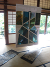 本来職人さんの手元には、自分が作ったものの見本布があるくらいで、作品はありません。 上の写真はその見本生地を石畳イメージ! 着物のイメージ! 頑張って工作してみました。 (私には、これが精一杯・・・) 皆暖い言葉を・・・「えー先生が作ったの!! すごいー。」「イメージしやすいよ」 ホントありがとうございました。 ものスゴークホッとしました。