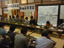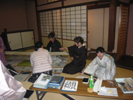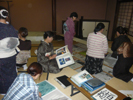 予定していた全体説明の時間より早く来られた人も、「マンツーマンよ!」なんてしっかり説明をしてもらっています。 いざ全体説明を始めると、それまでの会場のざわめきが嘘のよう・・・ 説明に全員が聞き入っています。時には質問も出たりして・・・ さすが、彩匠の生徒さん達です。 説明をして下さった、職人さんも「話には聞いてたけどすごいなあ!」と驚いていました。 ホント、感心します。 熱心!! だからこそ、準備がどんなに大変でも頑張れるんですけどね。