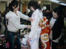皆それぞれの会場での着付を終えると、それぞれ自分も着物に着替えて、マスカット球場(成人式会場)へお直しのボランティアに向かいます。