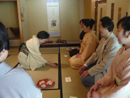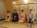 11人という多人数が幸いして、一部屋貸切状態でした。 参加者の中には、裏千家、表千家 それぞれで習っている方がいらっしゃったので、お手前をしていただきました。 初心者の私たちは、色々な違いがある事を目の前で見せてもらい、又仲間内だからこそ遠慮なくさまざまなことを聞いて、教えていただきました。