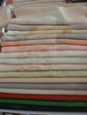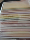 今回の小物というのは 帯締め、帯揚げの二点です。 今回は洒落物よりも略礼装に使える小物たちが大集合です。 彩匠では洒落物が、圧倒的に多いですが、今回は、色無地や付け下げ訪問着などの略礼装に合わせられる小物が揃っています。 その数何と帯締めも帯揚げもそれぞれ100本以上 100枚以上!! お願いしたのは私ですが・・・ちょっと驚く数です。