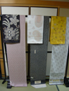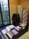 今回は、帯と着物のコーディネートを展示してみました。 紬に、小紋に無地。 それぞれ帯をチョイスして!!