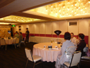 メインの認定証の授与式を終え、写場にて記念撮影。 会場に戻り、来賓による挨拶及び、乾杯。その後少しの食事時間をとり、今年は着付け師による技術披露。