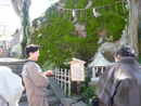 桜よりまず先に目に入ったのは、岩に苔むした苔の綺麗なグリーンです!! 「お~綺麗ね!!」 と言いながら、祠に手を合わせます。「呆け防止って書いてあるもん!!」 って・・・