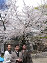 「写真撮るよ~!」と言っても、なかなか集合しないお姉さま方。 集合したと思ったら・・・「美しい桜の前に、美人が三人!!」 一人の言葉に、一人は無視。一人は言った人の顔をアップで見つめる! 良いんですよ~。楽しければ!! 自分達で大笑いです。 お姉さま方はパワフルです!