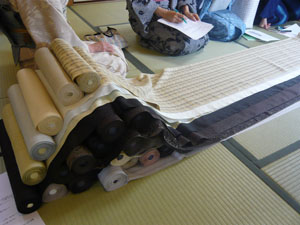 種類別に、産地別に・・・たくさんのお召を触り学びました。