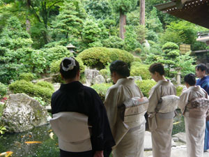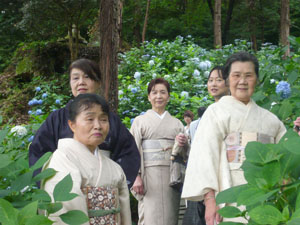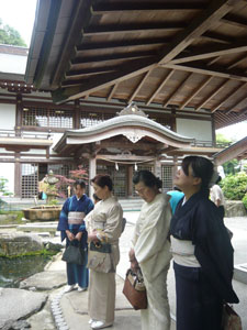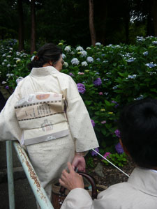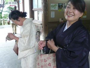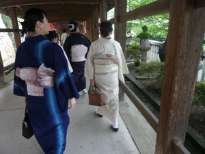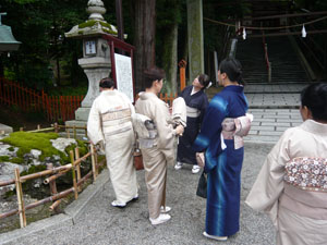 集合時間は13:00 午前中はかなりな雨で、「着物姿」が大前提のキモノジャック・・・どうなる事やら!と思っていましたが、集合時間が近づくにつれて小雨に・・・見事に上がりました。 非常に暑くもならなくて、山から吹き下ろしてくる風がひんやりして、心地よかったですよ。