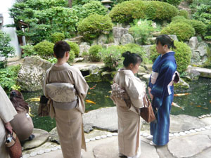 池の鯉を見ながら皆が話したことと言えば・・・「鯉の煮つけおいしいよね~」「そうだね。」「煮つけにするのは黒い鯉だね。」「そうだね、色の付いたのは見たことないね。」「色がついたのは観賞用でしょう!?」「あ、そうだね。」「表面の皮をはいだら、下の色は一緒かな?」「鯉の身はやっぱり白いでしょう!?」・・・なんて会話でしょう・・・くれぐれもご内密に!!