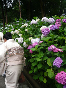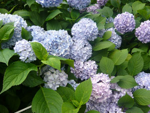 いろんな種類のアジサイが植えてありました。 色も花の形もそれぞれ違って美しい・・・