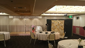 昨年惜しまれながら、お店を閉められた大阪の小売屋さんから「娘のあなたに!!」と嬉しい言葉と共にいただいた、立派な打ち掛けと共に、取引先が届けって下さった、お祝いのお花たちが、会場を華やかにして、当日認定証を受け取られる皆さんを迎えてくれました。