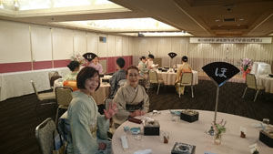 そしてその後は、着付け師講師による提案「女子力アップ」と題し立ち居振る舞いの中で、基本的なものから、応用編まで、モデルによる実演および、全員参加で実技。