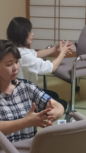 すみません。昼の部は私も講習を受けたので・・・自分の事が一生懸命過ぎて、写真は一枚しかありません・・・ 毎日無意識に酷使している手を、こんなにまじまじと見た事はなかったように思います。 腕、手、指一本一本・・・だんだん愛おしさが増してきました。そんなに長時間でも、力を入れたわけでもないのに、手がポカポカしてきました。指を広げる、指を反らせるそれがとっても大事なことだと実感しました。