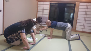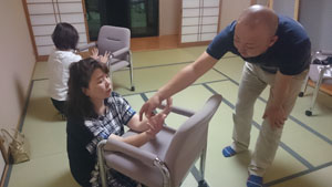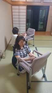さて、どうしたらいいか? 考えた末にいつも整体でお世話になっている「オフィス ニコスコ」の「高野先生」に相談しました。まず最初は着付けのフォームをチエックしていただき、少しでも負担の少ない着付けの方法を考えてもらおうと計画したのですが・・・長年受け継がれている着付けの方法には、既に考えつくされていた跡が見えてきました・・・更に、一人一人着付け師の身長も違えば、着せつける相手の身長も違います。これは一人づつのチェックが必要という結論(希望者はチェックしてもらえます)