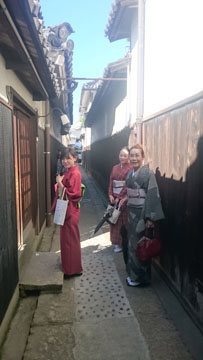 今回は倉敷で開催されている、「屏風祭り」をキモノジャックでした。主催者の方でも着付けのサービスをされていたようで、着物姿の方が、結構沢山いらっしゃいました。 みんな、着物を着たい気持ちはあるんだな~と再確認してニヤニヤしちゃいます。