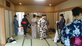 今年は私が土曜日、出張で教室を開けていたのですが、学院長先生を助けて、講師の資格を持っている生徒さん達がボランティアで参加者の皆さんを教えてくださいました。 生徒さんのお友達や会社の方、お友達同士や、母娘一緒に参加された方も・・・着物大好きでゆかたを自分らしく着たい方々が、参加して下さいました。