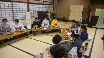 そして、食べ終わったら・・・皆そわそわ始めます(笑) 座布団を寄せ、テーブルを片づけ・・・ 何か言いたい眼で、訴えるような眼で私を見つめる生徒さん達!! そうです、これからが彩匠の生徒達の本領発揮!
