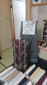 一つ一つのこだわりのある作品たちは、本当に個性的。 更にどう組み合わせるかによって、表情が変わります。 勿論着物や帯だけではどんなに素晴らしくでもダメ。着る人自身を美しく見せてくれるものでなければ・・・