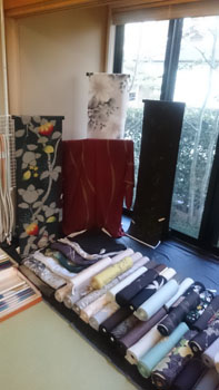会が始まってからは、写真を撮る間はほとんどなく・・・ 三日間沢山の生徒さんが来て下さった賑やかな楽しい会になりました。大学生の生徒さんや、生徒さんのお嬢さんなど今回は若い方々が多く来て下さり、自分に似合うものを見つけて喜ぶ姿は、こちらにも何倍もの喜びを与えてくれました。持ち物を更に生かすための帯合わせや、小物合わせ・・・出来上がっていくにつれて、着て行く場所のイメージが広がります。綺麗になってく姿、新しい自分の魅力を見つけた瞬間、女性って本当に美しく可愛らしい・・・ そのお手伝いができる事を心底幸せだなあと思うのです・・・ちょっとジェラシーを感じる事も事実です(笑)