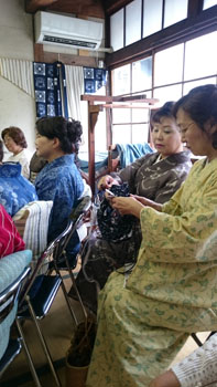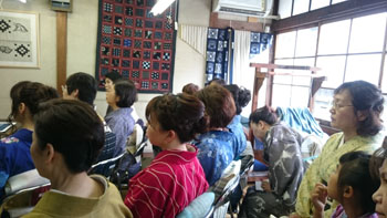 帰ってきてからある生徒さんが言いました。「あの日名川先生の穏やかな雰囲気に、とっても惹かれました!」って。本当に穏やかで優しい物腰の先生です。 その先生が、作州絣の歴史や、先生との関わり、先生が復興することになった経緯や思い、その方法。そして、二度と途絶えさせないための体制について、お話をして下さいました。 先生の真摯な思いや、熱い思いが胸に迫ってきます。