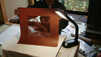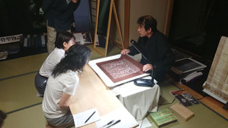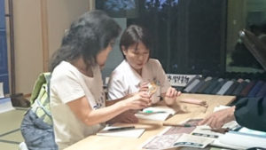 そして三回目・・・仕事を終えてから駆け付けて下さいました。本当に熱心です。頭が下がりますよ~!! 彫刻刀も凄いけど、掘りあがった型紙の緻密さにも・・・人間て凄い生き物ですよね~!!
