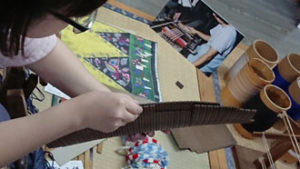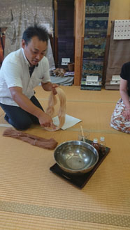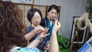 意外な事に、実物のお蚕さんを見るのは初めて!と言う人もいましたね。最初は気持ち悪かったお蚕さんも、時間がたつと・・・(三時間以上居ましたからね。)「何だかとっても可愛くなりました!」「ひんやりしてる・・・可愛い!!」と言う声が飛び交いました。
