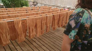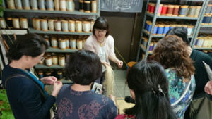 ここの地下水を使わないと出来ない柿渋染、ここで開発された松煙染めでしか出来ない絣織り、更には昔から本当に大切にされてきた木羽定規から作り出される柄・・・ 生活と密着している物作りの素晴らしさは圧巻です。 御家族で、大事に大事に作られている作品は、一点一点本当に味があり、力があり、暖かさがあり、語りかけてくるようです。作られている職人さんの人柄がにじみ出てくる作品達です。 沢山学び、沢山のおもてなしをいただき、勿論、沢山の作品をピンワークさせていただき・・・本当にこの場を離れがたい・・・充実した幸福な時間を過ごさせていただきました。