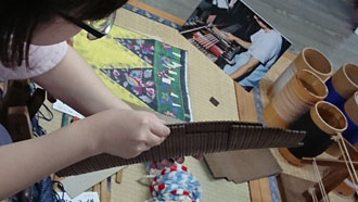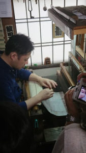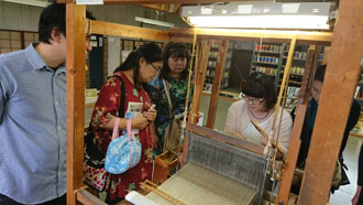 そう、いよいよ職人さんの工房へ。 まずは 越後おぐに「高三織物」さんへ