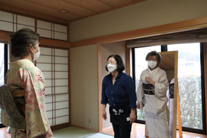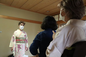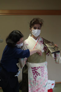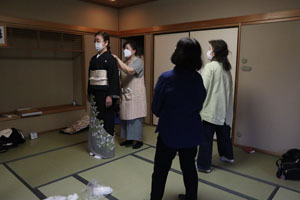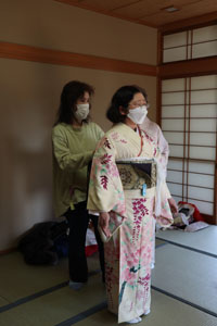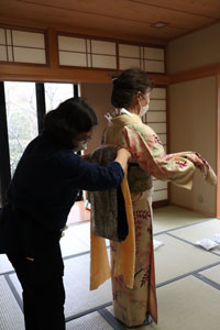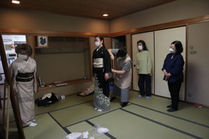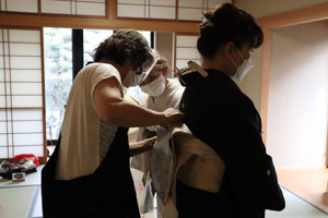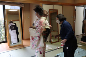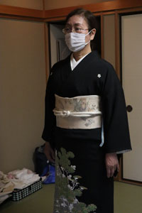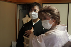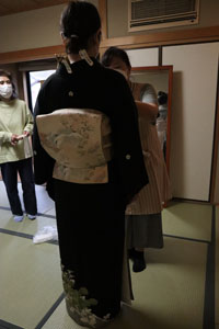 そして、その隣ではちょっと先輩の着付け師二人が、「黒留袖」のお稽古です。