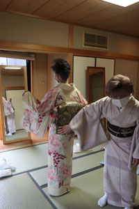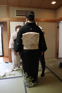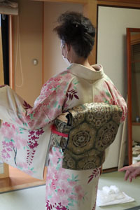「短いから帯締めが変なとこで不細工にしか結べませんね」